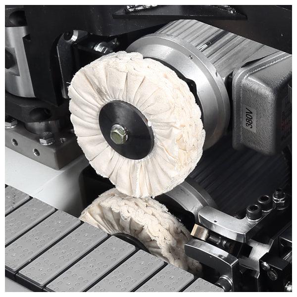 2800 RPM top & bottom buffing units to polish the machined edge