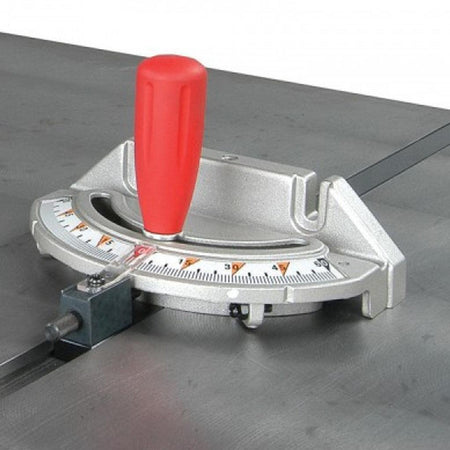 - Table tilts to 45° for bevel cuts