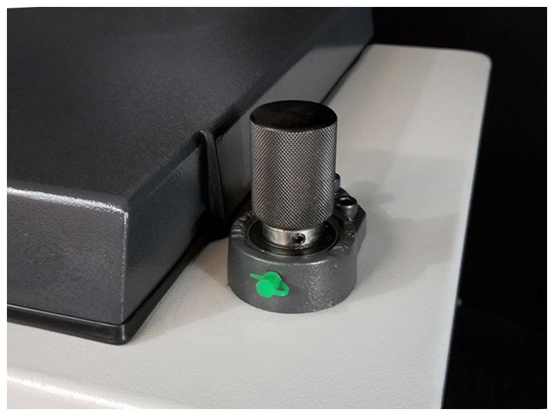 - Safety limit switch on the cover will not allow the operator to run the machine with the hood open.