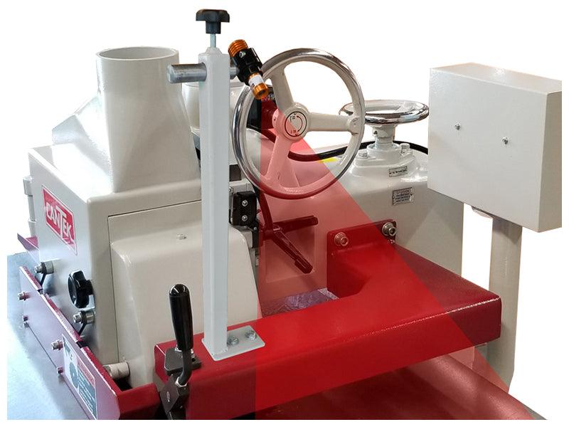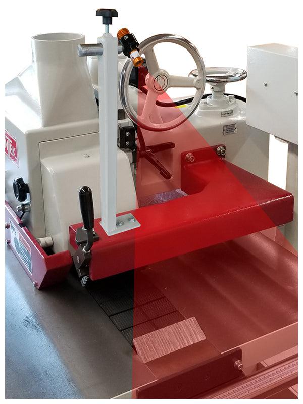 The CANTEK 303S Straight Line Ripsaw is a straight line ripsaw that is the ideal ripping upgrade for those looking to prepare material for a moulder or for producing face frame material. The 303S automatically feeds the material for consistent rip results. The cast iron feed chain runs on double V guide rails and holds the material firmly for precision straight cutting. A powerful 10 HP motor with maximum 12” blade provides a cutting depth up to 3.35”. A micro adjustable infeed fence allows for quick setups to ensure precise rip widths with fast adjustments.