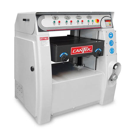 The Cantek CM626 26″ Planer is a production planer with high horsepower and feed rates. It is equipped with our spiral insert knife cutterhead with two sided replaceable knives which produce a smooth planed finish with maximum cutting depth. With upper and lower driven feed rollers the CM626 can plane even the most difficult to feed material. The powerful 20HP motor can ensure optimum stock removal even on full width boards. With infinitely variable feeds the operator has full control to ensure the optimum feed speed according to your needs. Equipped with motorized movement of the table by convenient digital control the operator can accurately input the desired thickness to achieve accurate results.