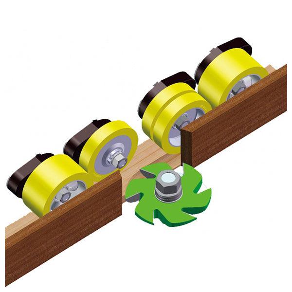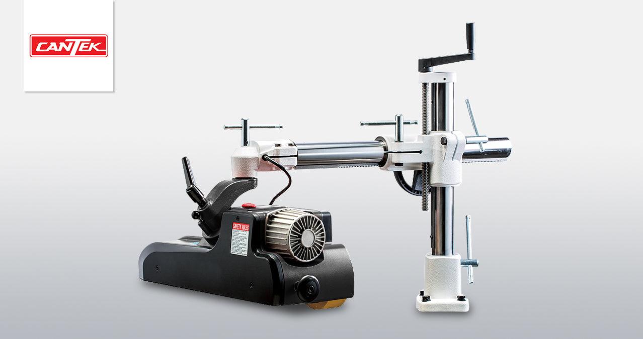 The Cantek DC40 4-Roll Variable Speed Power Feeder is a safe and powerful feeding unit for shapers, table saws, and more. The rubber feed wheels grip the workpiece firmly and feed it at a constant speed to produce flawlessly finished pieces. The DC brushless servo motor with electronic variable speed adjustment allows the operator full control for setting the optimum feed speed according to the specific job. The universal stand allows for quick positional adjustment from a horizontal to vertical positioning and everything in between.