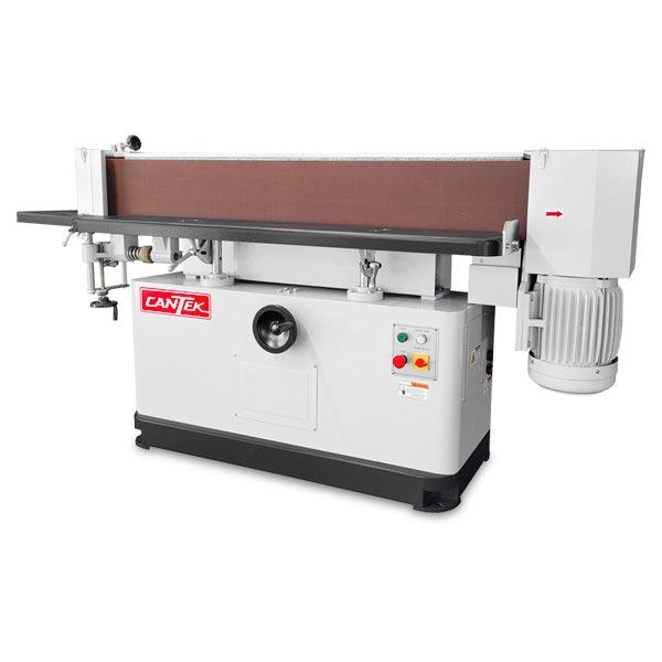 The Cantek OES512D Heavy Duty Oscillating Edge Sander is the ideal edge sander for demanding applications for production use. Equipped with a 12” high oscillating sanding belt, it is ideal for sanding drawer boxes, doors, furniture components and more. The OES512D is also equipped with dual front and rear tables which are adjustable up & down and can be tilted to 45 degrees, allowing for a wide range of applications and full utilization of the sanding belt. The dual tables also allow for two operators to be working on the machine at the same time made possible by the powerful 10 HP sanding motor. The adjustable and tiltable end table allows for sanding of curved components on the idle pulley. The belt oscillates up and down which helps in keeping it cool while also producing an optimum sanded finish.