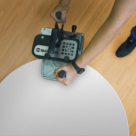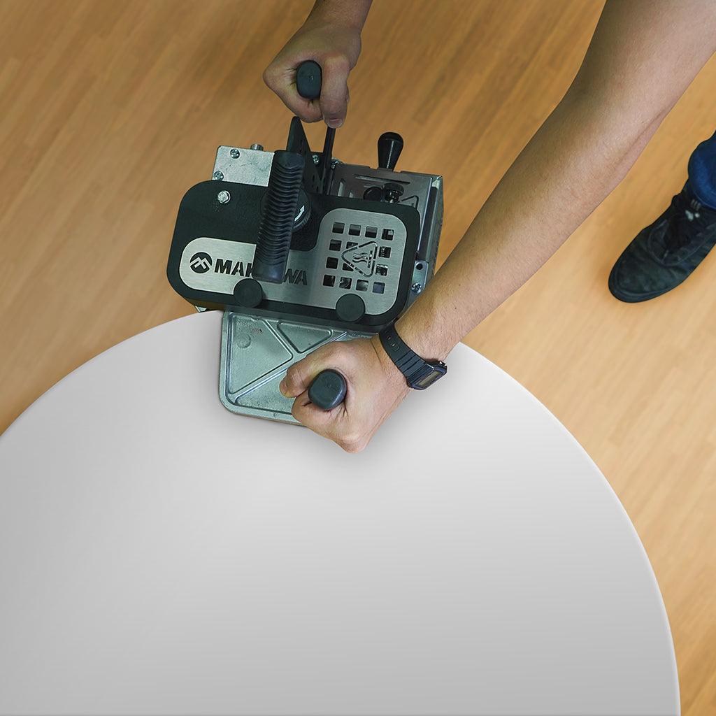 The hand-held CBC FLEX is perfect to applying edgebanding to concave and convex curved pieces. It works with tapes from 0.3 (1/64”) to 1 mm (5/16”).