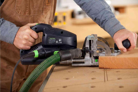 - Mortise width adjustment with the turn of a dial allows for easier alignment when joining panels