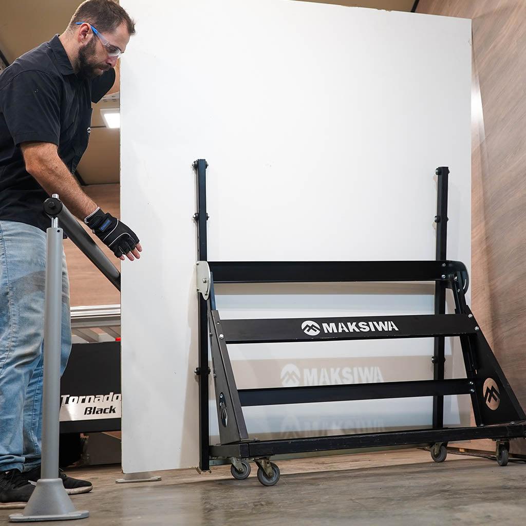 The TC.3000 Panel carrier was made to facilitate the day to day tasks of the perfectional wood worker. Its durable structure and 4 wheels allows anyone to easily carry 2 full sheets of wood at once. It has adjustable height making it easy to work in conjunction with virtually any woodworking equipment you have such as panel saws and table saws. With a carrying capacity of up to 254 pounds, this will help you increase productivity, reduce injuries from carrying heavy loads, and only needs one person to operate it.