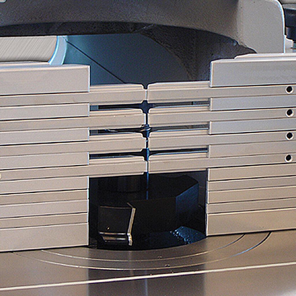 - Cast iron ground & polished table with insert rings & t-slot for mitre / tenoning jig