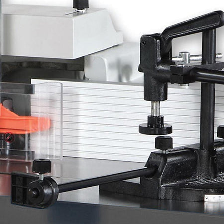 - Finger style fence allows fence to be adjusted around the cutter for added safety and workpiece stability